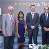 El Presidente de la Junta Central Electoral, Julio César Castaños Guzmán, en compañía de los Miembros Titulares de la JCE, Magistrados Roberto Saladín Selin y Carmen Imbert Brugal, recibieron la visita del Presidente de la Asociación Nacional de Jóvenes Empresarios (ANJE), Raúl Hoyo, quien estuvo acompañado por Radhamés Martínez, Primer Vicepresidente, y Karina Macebo, Directora Ejecutiva.