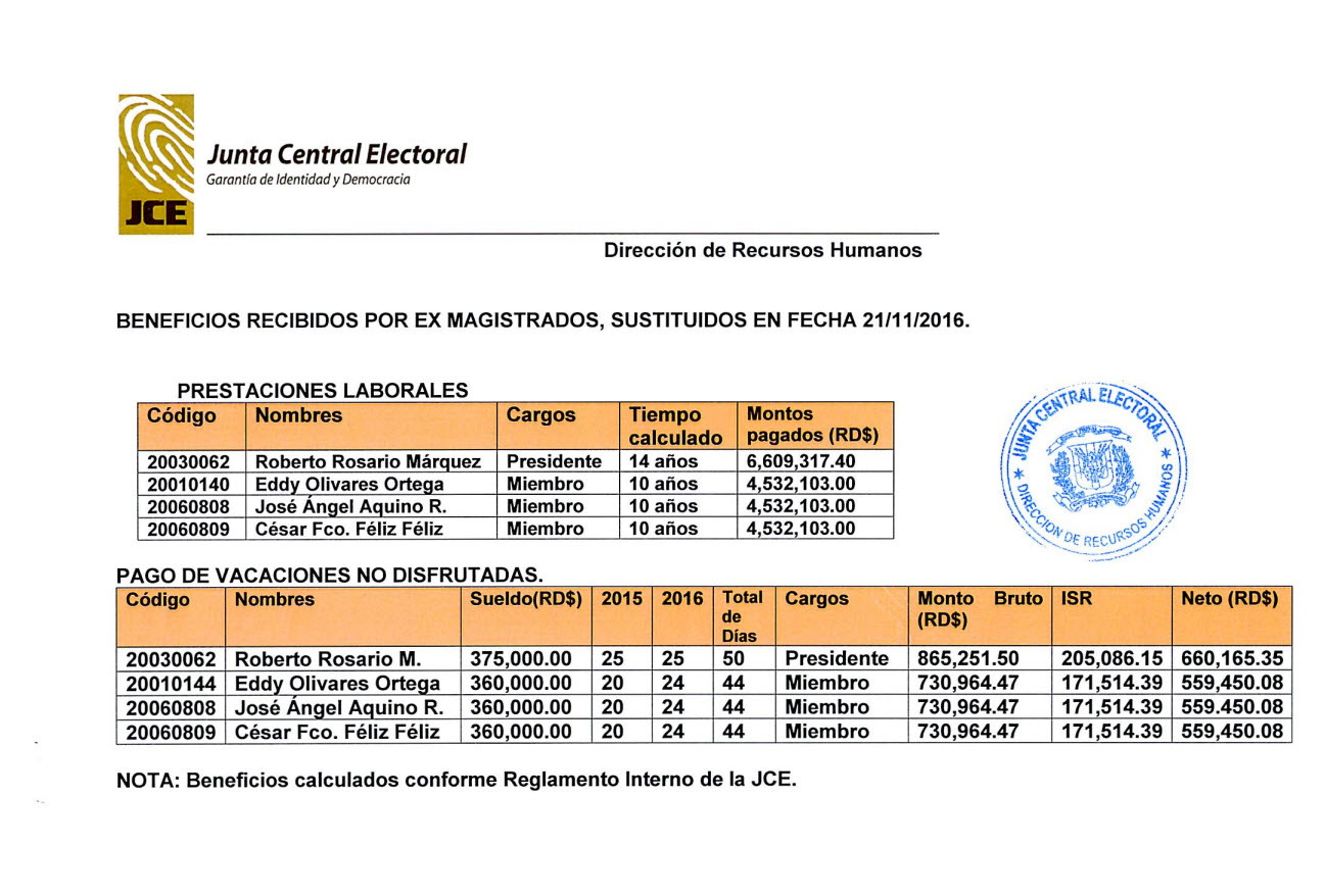 Cumpliendo con lo establecido en la Ley No. 200-04 de Libre Acceso a la Información Pública, la Junta Central Electoral (JCE) asume el compromiso de publicar en su portal de transparencia las remuneraciones recibidas por nuestros funcionarios y empleados. Para esta institución nuestros recursos humanos constituyen un elemento fundamental, lo que nos ha permitido fortalecer y dimensionar todos los servicios que ofrecemos a la ciudadanía.